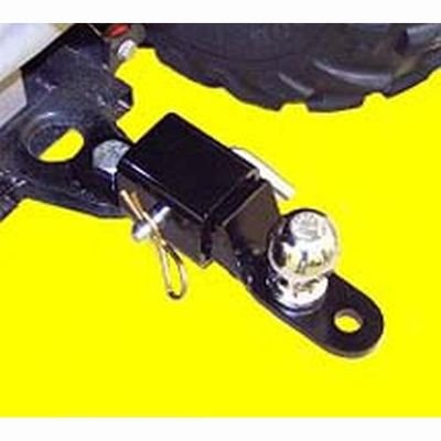 Universal receiver hitch fits all ATVs that accept a trailer ball, allowing for a ball-mount or pin-pull hitch without changing hitches. Heavy-duty powder-coat construction. Insert is reversible for trailer hitch height adjustment. Will not affect ground clearance. Utilizes standard 2in. hitch box. U.S.A.