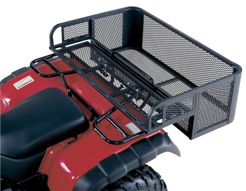 The Swisher ATV rear drop basket provides extra room for hauling on your ATV. Camping, hunting, and fishing gear, feed, seed, coolers, fuel cans and tools can all fit nicely into the rugged and versatile basket. Welded over a heavy 3/4-inch frame, the 16-gauge expanded metal mesh is made to handle the abuse of outdoor work and play. The basket is designed to mount quickly and easily over the ATV's OEM rack.
