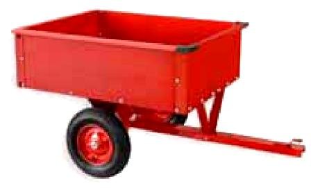 An incredibly-handy hauling and moving tool around yard, work or farm. In our tests, even a relatively-small 13-hp riding lawn mower (not a garden tractor) was easily able to pull cart-loads of mulch, dirt, and debris with huge time effort savings over wheelbarrow or wagon hauling. Easy assembly in just minutes with common hand tools, all hardware and instructions included. Universal-fit draw-bar hitch (clevis pin-style). Total capacity (level) 9.7 cubit ft, .35 cubic yard 500 lbs maximum weight capacity. Ships UPS 3-5 day delivery, 84 lbs shipping weight. Color may vary from item pictured. One-year warranty and Satisfaction Guarantee from Jack's Tool Shed.